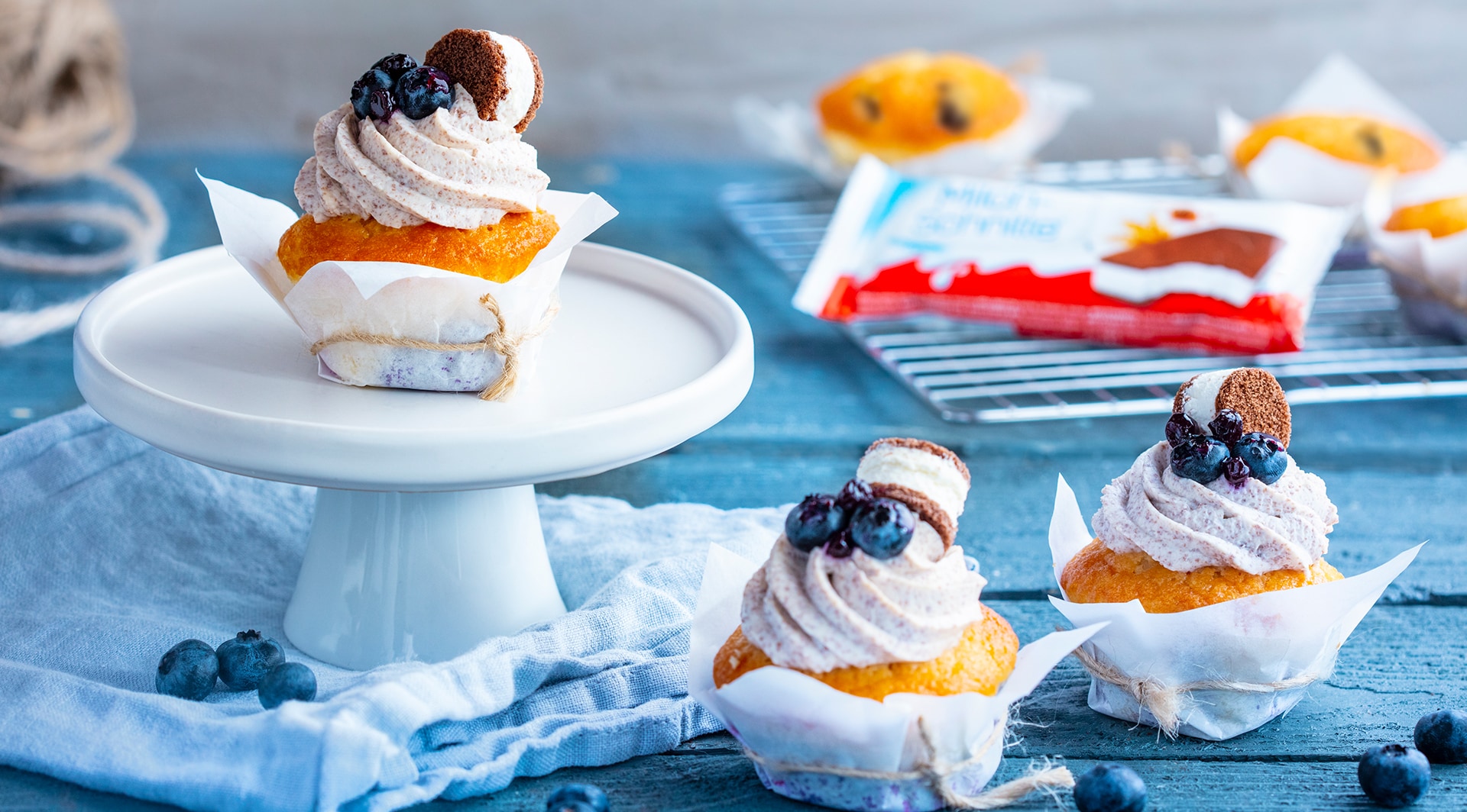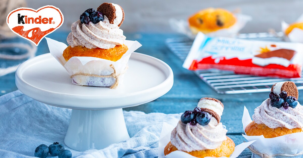 Fluffige Cupcakes mit Heidelbeeren und einer gekühlten Creme aus Milch-Schnitte®.