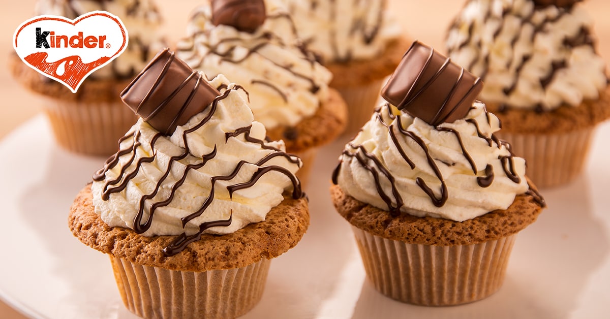 Cup-Cakes mit einem Topping aus Sahne und kinder bueno. Ein leckerer Hingucker für jeden Anlass oder den Genussmoment zwischendurch.