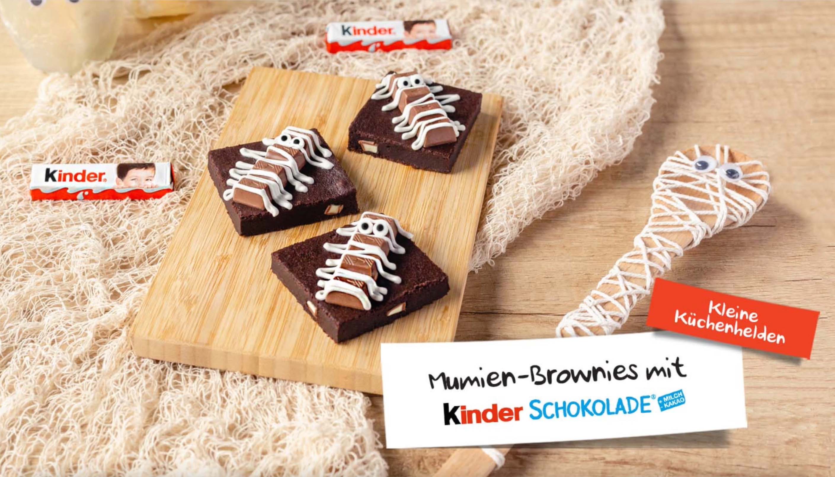 kinder rezepte - kinder Schokolade - Halloween Mumien-Brownies mit kinder Schokolade - Video