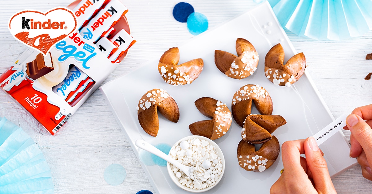 Recipes - Kinder Riegel - video - Kakao-Glückskekse mit Liebesbotschaft mit kinder Riegel
