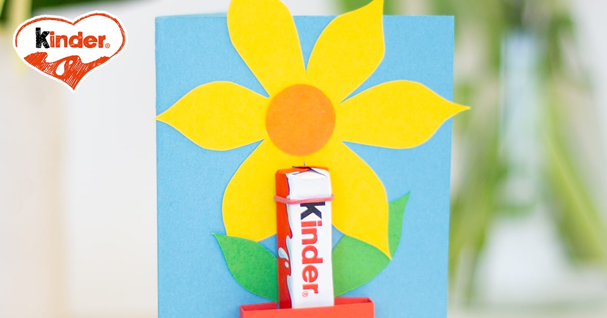 Fädle das Gummiband durch beide Schlitze, sodass auf der Kartenvorderseite zwei Gummischlaufen entstehen und stecke die kinder Schokolade hinein.