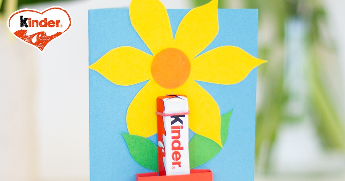 Falte die Pappe für den Blumentopf an den vorgegebenen Stellen zu einer Schachtel. Klappe die untere Lasche ein – sie bildet den Boden des Topfes. Trage an den markierten Flächen Kleber auf, um die Form zu fixieren und klebe den fertigen Blumentopf dann über die kinder Schokolade.