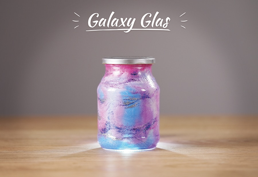 Ein Universum im Glas? Kinderleicht! Jetzt das DIY ausprobieren und mit Glitzer und bunten Farben die eigene Milchstraße basteln! So geht galaktischer Spielspaß!