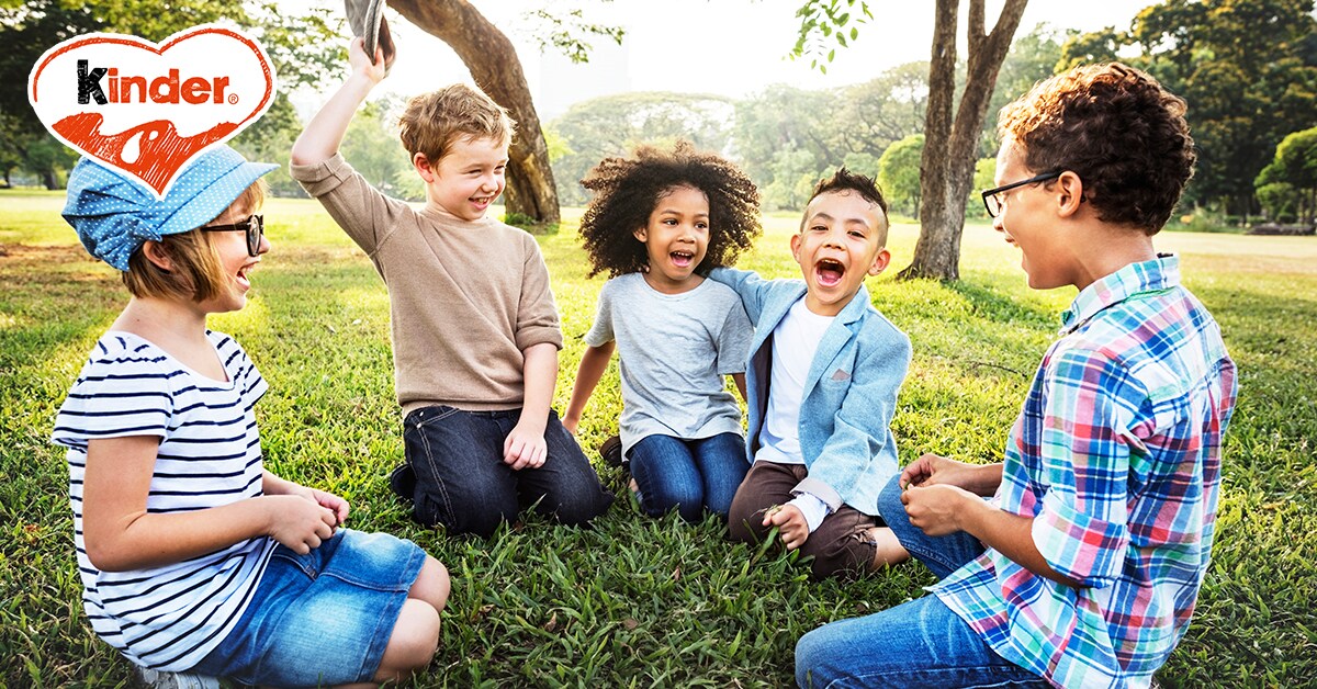 Zwei Kinder setzen sich dicht hintereinander auf einen Stuhl.