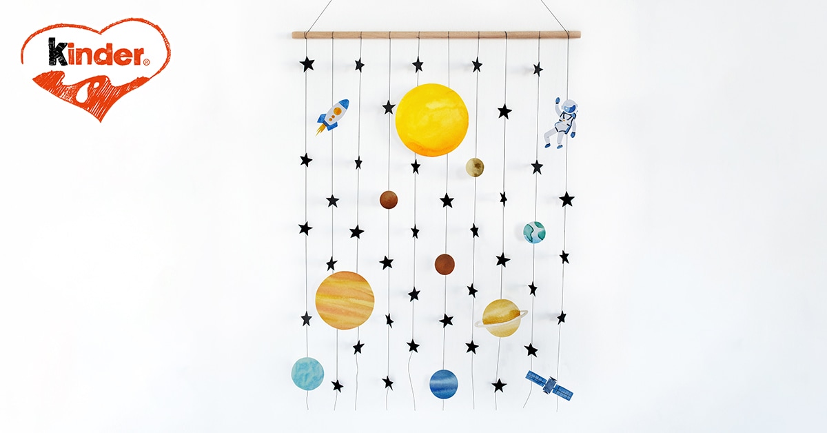 Mit wenigen Handgriffen einen kreativen Wandschmuck für kleine Forscher und Astronautinnen basteln.