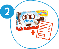 2. Ein Bild des Kassenbons zusammen mit der Aktionspackung auf der Website www.kinder-chocofresh-gratistesten.de hochladen und anschließend das Kontaktformular auf der Aktionsseite ausfüllen.