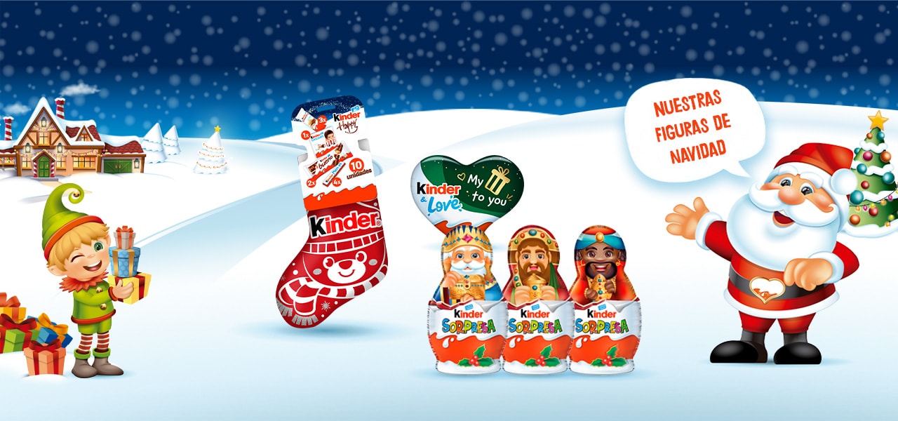 El tradicional calcetín Kinder® contiene: 2x Kinder Bueno, 3x Kinder Country, 4x Kinder Maxi, 1x Kinder Chocolate T4.