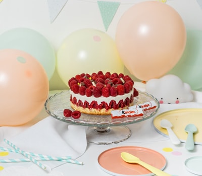 Une idée recette idéale pour fêter un anniversaire. Un gâteau au chocolat Kinder et aux framboises fraîches pour faire la fête avec les copains !