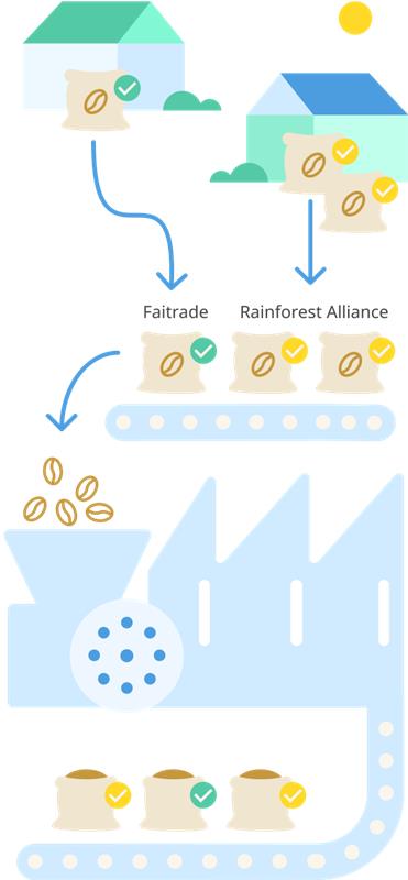 Za čokoladne proizvode koji se obrađuju izvan naših tvornica, naši dobavljači mogu miješati certificirani i necertificirani kakao. Ipak, jamče da za količinu koju nam isporuče nabavljaju odgovarajući minimalni ekvivalent certificiranog kakaa.