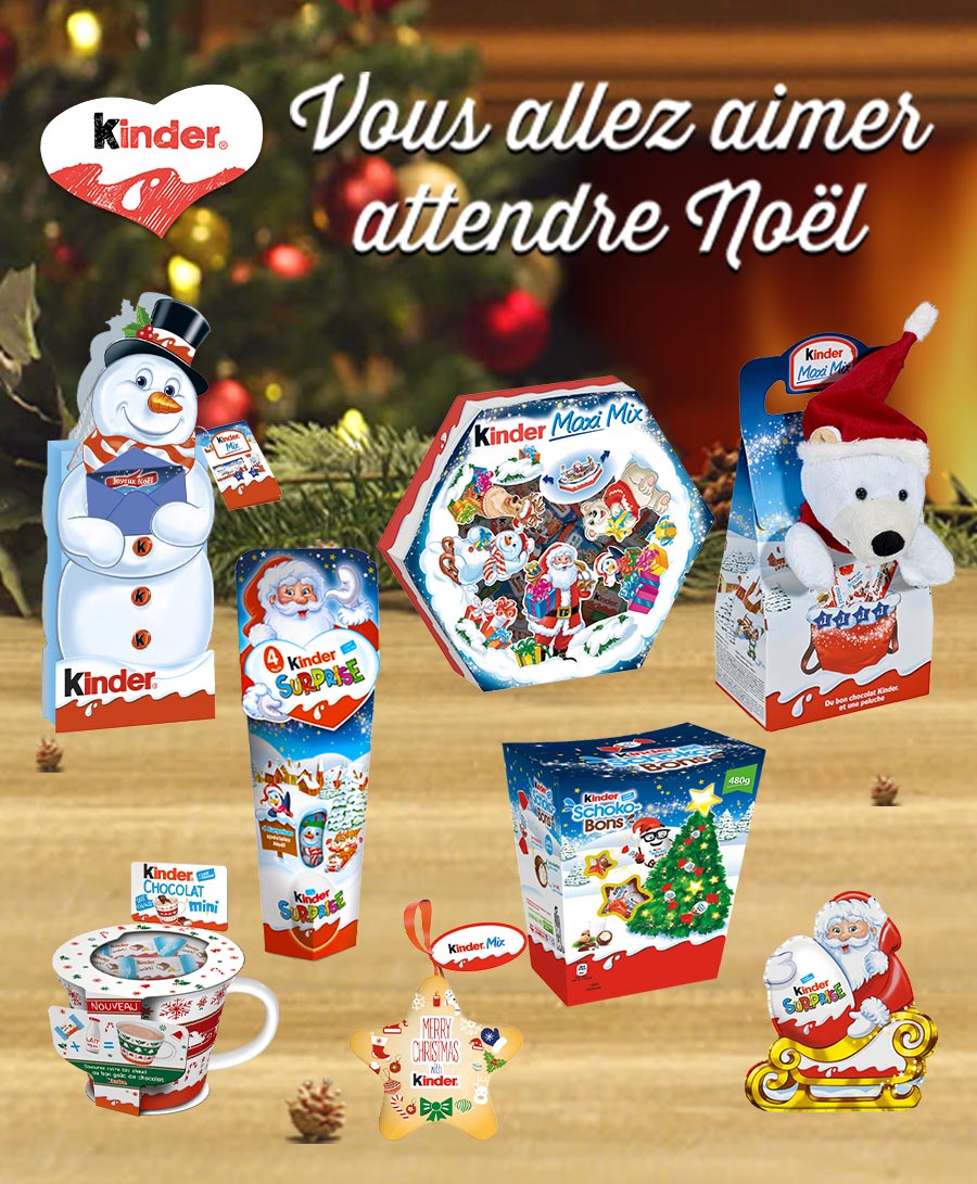 Offrez 6 Kinder Surprise à un enfant qui a été sage pour Noël ! En plus du bon chocolat Kinder, il aura en surprise des jouets de la collection spéciale Noël !