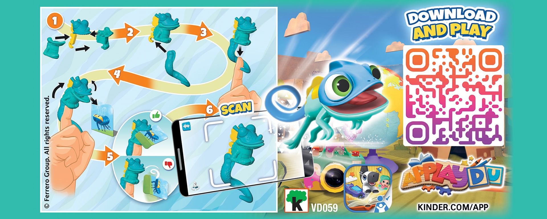 Dear parents, your kid can place the chameleon on his or her finger. Bending the finger the chamaleon opens and closes the mouth and can pick up the targets.