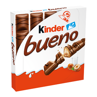 „Kinder Bueno“ yra gardus batonėlis su lengvu riešutų įdaru ir traškiu vafliu, padengta švelniu pienišku šokoladu. Vienoje pakuotėje – du gardūs batonėliai. „Kinder Bueno“. Pasilepinkite...