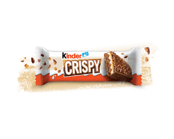 „KINDER Crispy“ – tai meistriškas plonų traškių vaflių ir pieno bei kakavos kremų derinys, padengtas „KINDER“ pieniniu šokoladu ir traškiais sausainių trupiniais.