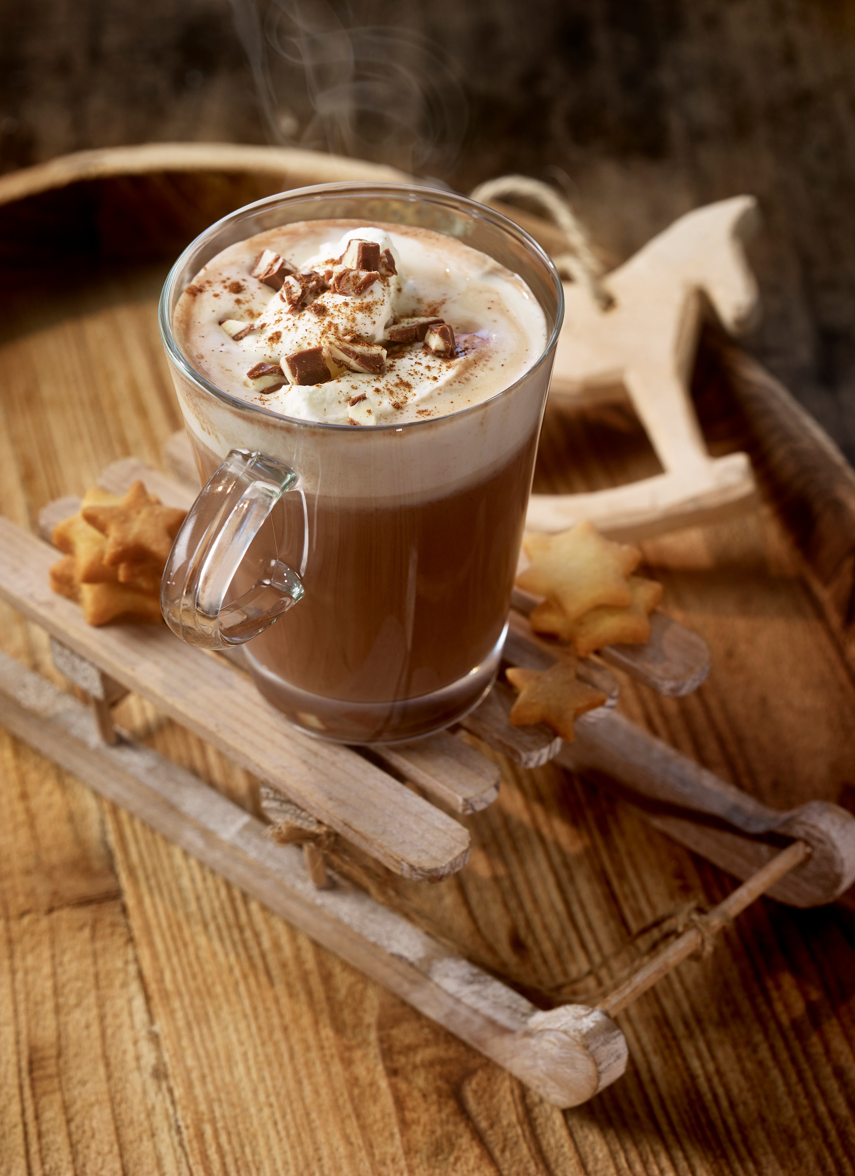 Chocolate caliente con Kinder® Chocolate ¡Ponte cómodo y disfrute de un chocolate caliente!Me gusta | 0Ya te gusta ;)20 minutoskinder_chocolate_receta_chocolate_caliente.pdf Ingredientes 40 ml de nata4 barritas de Kinder® Chocolate (50 g)360 ml de leche entera1 pizca de miel1 cucharadita de cacao en polvo1 pizca de canela molidaInformación nutricional: Porciones: 6Por porción: 76 gPor porción: 100 kcal Instrucciones to be removed Montar la nata en un recipiente. Pica en trozos grandes 3 barras de Kinder® Chocolate. Caliéntalas con la leche mientras revuelves hasta que el Kinder® Chocolate se haya disuelto por completo. Agrega la miel, el cacao en polvo y la canela. Revuelve. Vierte la mezcla de Kinder® Chocolate en tazas o jarros. Coloca la nata encima como cobertura. Ralla finamente el resto de la barra de Kinder® Chocolate sobre la cobertura de crema. Espolvorea el Kinder® Chocolate caliente con canela si lo deseas. Sirve. Compartir receta Receta anteriorVolver a recetasReceta siguiente