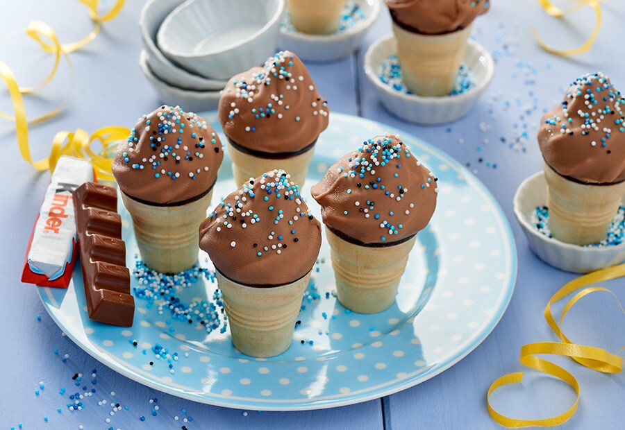 Sumerje el helado de chocolate en el Kinder® Chocolate derretido, decora con chispas de azúcar si lo deseas, y sirve.