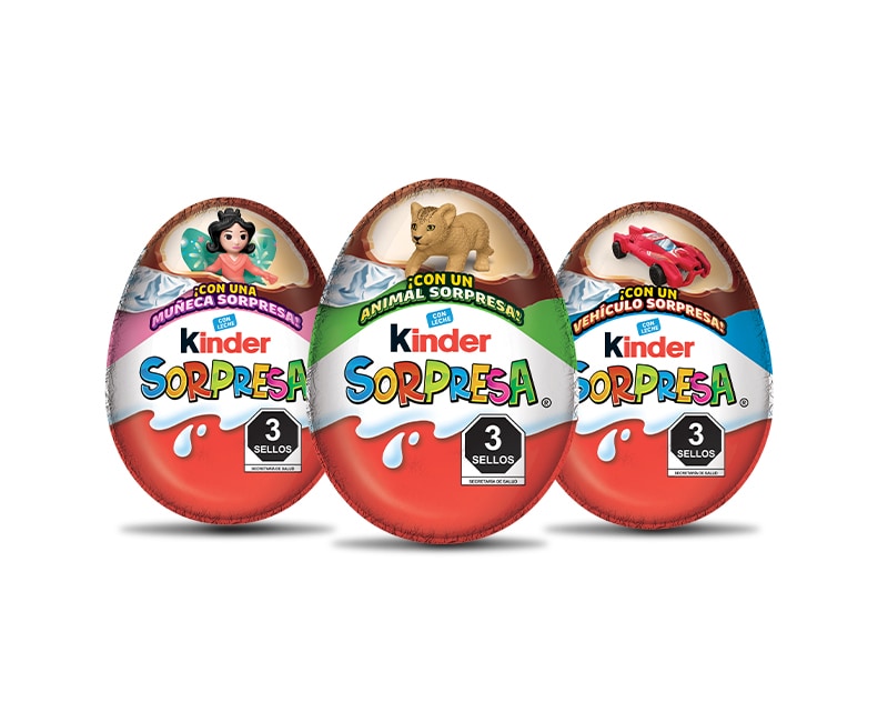 Kinder Sorpresa es un producto en forma de huevo, elaborado a base de un delicioso chocolate y una fina capa de leche y, al mismo tiempo, contiene en su interior una divertida Sorpresa que estimula el juego y el aprendizaje.