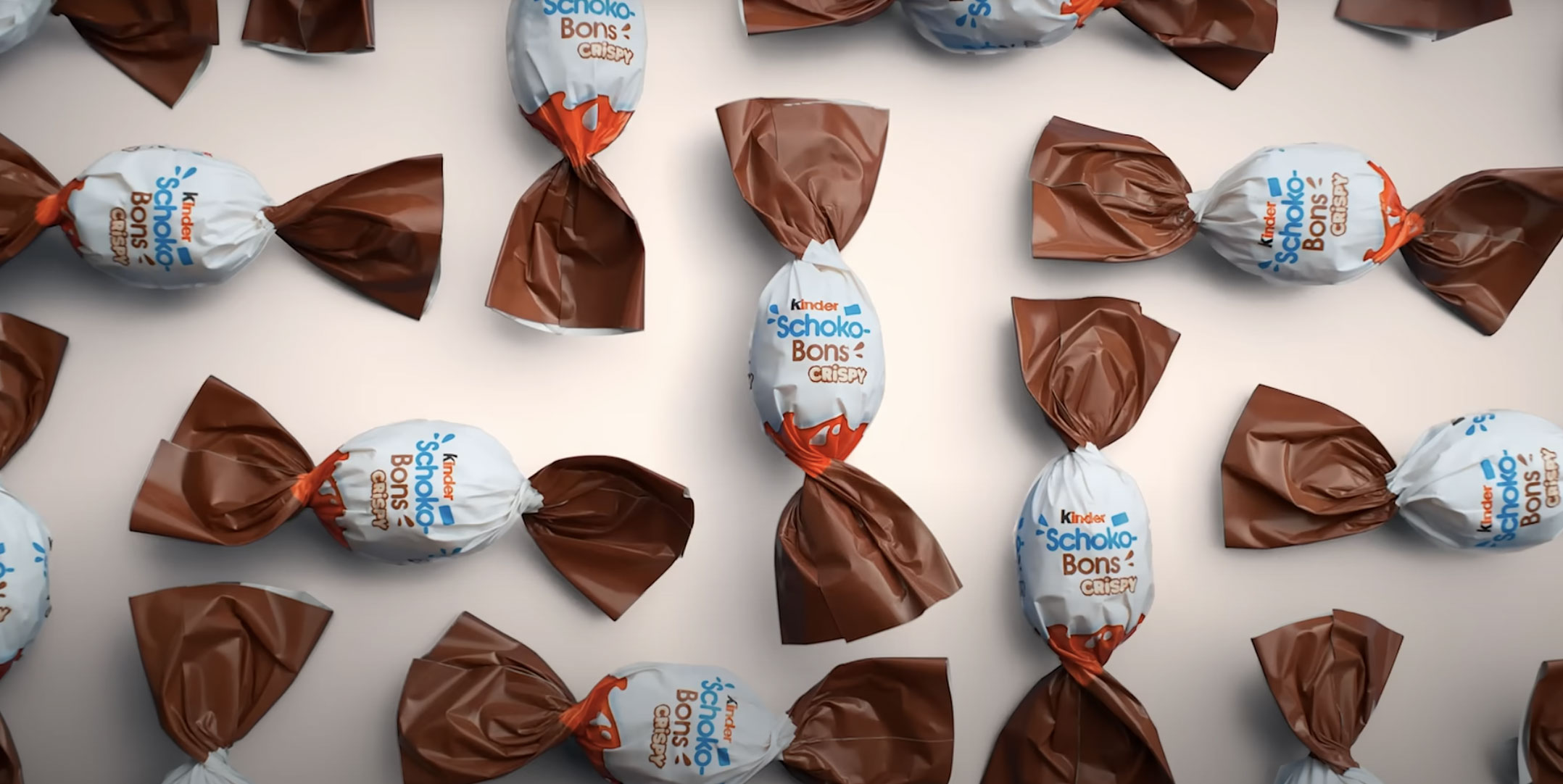 Kinder Schoko-Bons Crispy is a bite sized, oval shaped treat. It has delicious milky and cocoa filling inside a crispy milk chocolate coated wafer biscuit covered with tasty cocoa sprinkles.